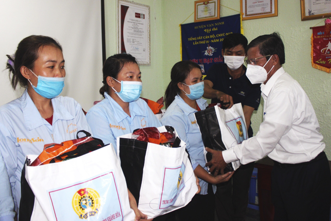 Ông Trần Ngọc Thanh trao túi an sinh cho lực lượng công nhân tại huyện Vạn Ninh. |