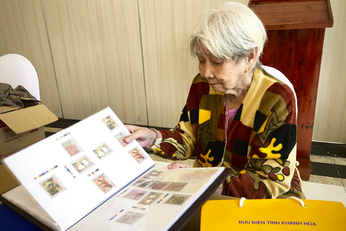 Niềm vui của bà Tô Kim Hoa (TP. Hồ Chí Minh) khi mua được phong bì tem ngày phát hành đầu tiên để kỷ niệm tại Triển lãm tem bưu chính khu vực Nam Trung Bộ 2020 tại Khánh Hòa |