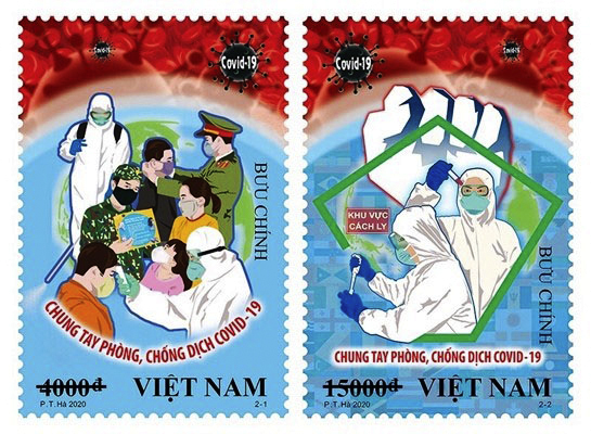 Bộ tem Chung tay phòng, chống dịch Covid-19 - một trong những bộ tem đầu tiên của thế giới về dịch Covid-19. |