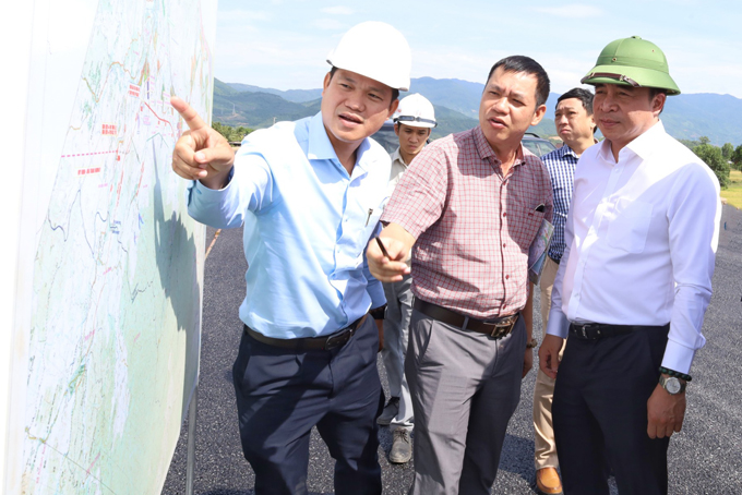 Ông Nguyễn Khắc Toàn kiểm tra tiến độ dự án trọng điểm trên địa bàn tỉnh. Ảnh: M.HÙNG |