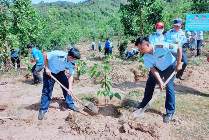 Lực lượng Quản lý thị trường tỉnh phối hợp trồng 1.000 cây xanh tại Trạm Quản lý bảo vệ rừng Sơn Tân, huyện Cam Lâm. |