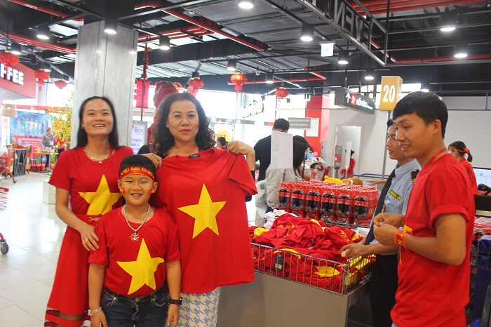 Tại các cửa hàng trên đường Nguyễn Trãi, Thái Nguyên, đường 2-4, Siêu thị Lotte Mart…, cờ tổ quốc, áo, băng rôn, kèn được trưng bày ngay sát lề đường. Người dân chen chúc mua đồ, tạo không khí nhộn nhịp, hào hứng. Trước nhu cầu quá lớn, nhiều nơi đã thông báo hết hàng. Giá các mặt hàng này cũng nhanh chóng tăng theo nhu cầu.