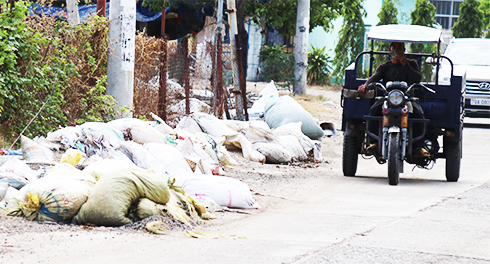 Những bao tải chứa ốc, vẹm, sò chết bị vứt bỏ bên đường. |