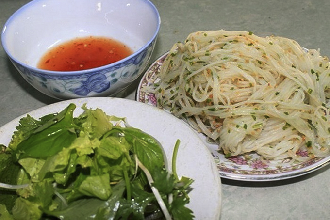 Mỗi lần về, bữa sáng đầu tiên của tôi là cơm chị Chút, hôm sau tới bún cá chị Phương. Qua ngày thứ ba, không cần phải hỏi, chị Hằng sẽ ghé chị Dung, mua ký bánh dây bánh hỏi rưới mỡ hẹ, rưới tôm, gói trong lớp lá chuối xanh vô cùng hấp dẫn.