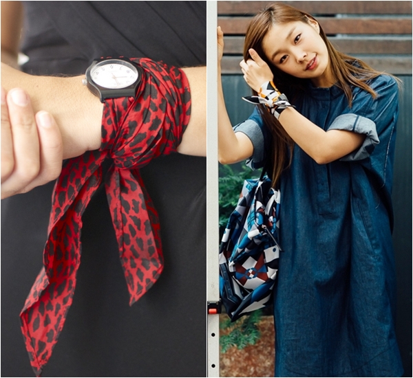 Mềm mại và lãng mạn nhưng rất cá tính chỉ với khăn lụa và cách thắt nút giản đơn. Tín đồ thời trang có thể mix cùng vòng tay hay đồng hồ để tăng vẻ sinh động.