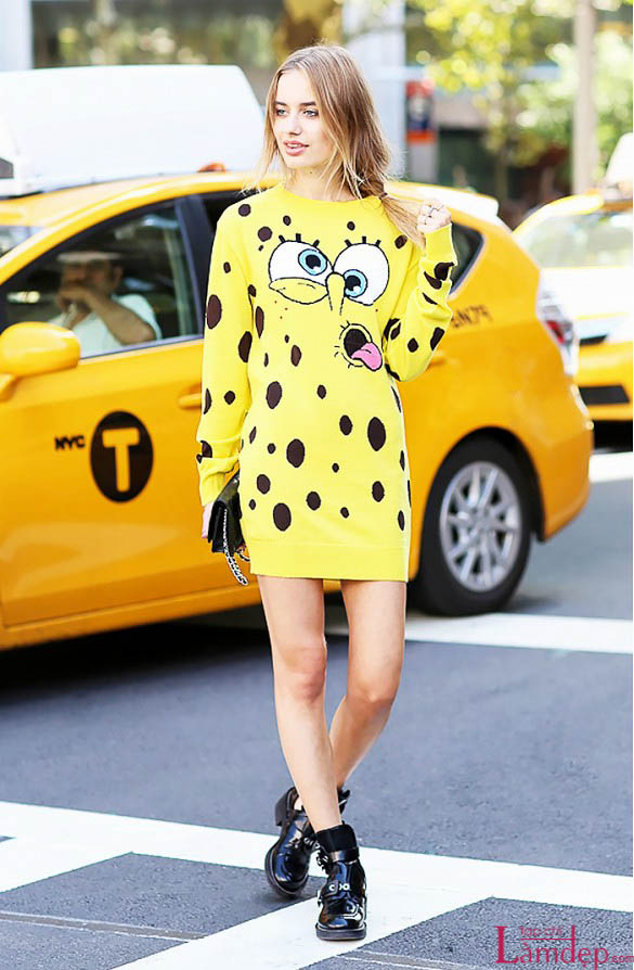 Chúng ta có thể nhìn thấy các anh hùng hoạt hình xuất hiện ở những thiết kế của Preen, RED Valentino hay thậm chí là Pausto Pulisi, nhưng để nói về độ xinh xắn và ấn tượng, phải nhắc đến cái tên Moschino. Hãng này tạo ra một dòng sản phẩm với những hình ảnh đồ ăn vặt ưa thích của trẻ em. Bạn hãy tìm cho mình chiếc áo với những hình ảnh vui nhộn.