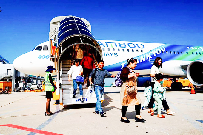 Khách du lịch Hàn Quốc đến Khánh Hòa bằng chuyến bay của Bamboo Airways. |