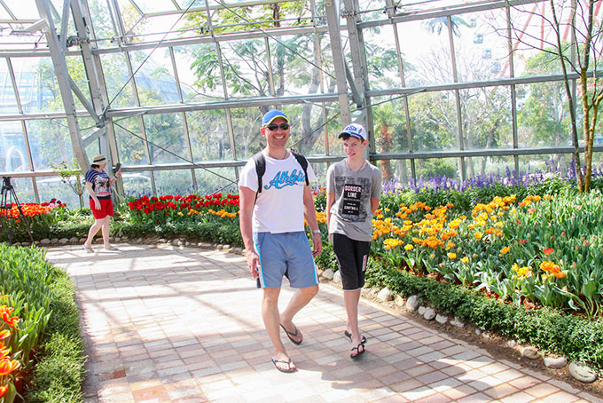 Du khách tham quan vườn hoa tulip tại Vinpearl Land Nha Trang. |