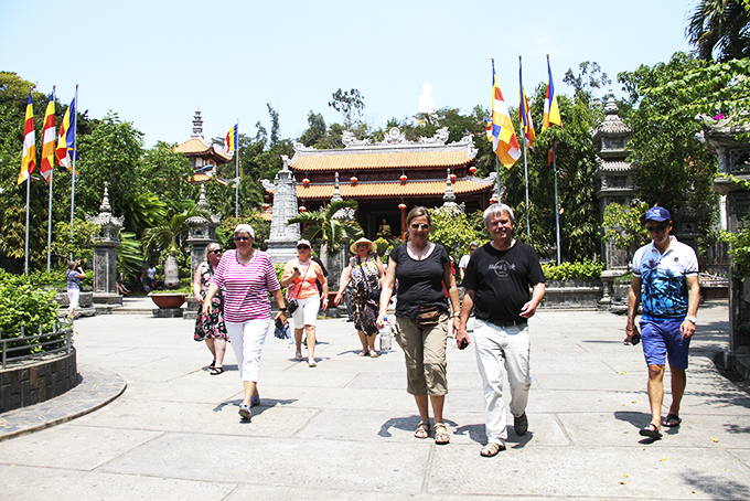 Khách du lịch quốc tế tham quan chùa Long Sơn. |