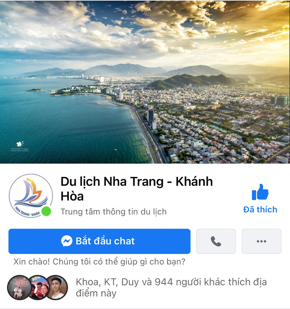 Trung tâm Thông tin Xúc tiến Du lịch Khánh Hòa (thuộc Sở Du lịch) vừa cho ra mắt Fanpage “Du lịch Nha Trang – Khánh Hòa” để phục vụ công tác quảng bá thông tin, hình ảnh, hoạt động sự kiện của ngành du lịch Khánh Hòa.