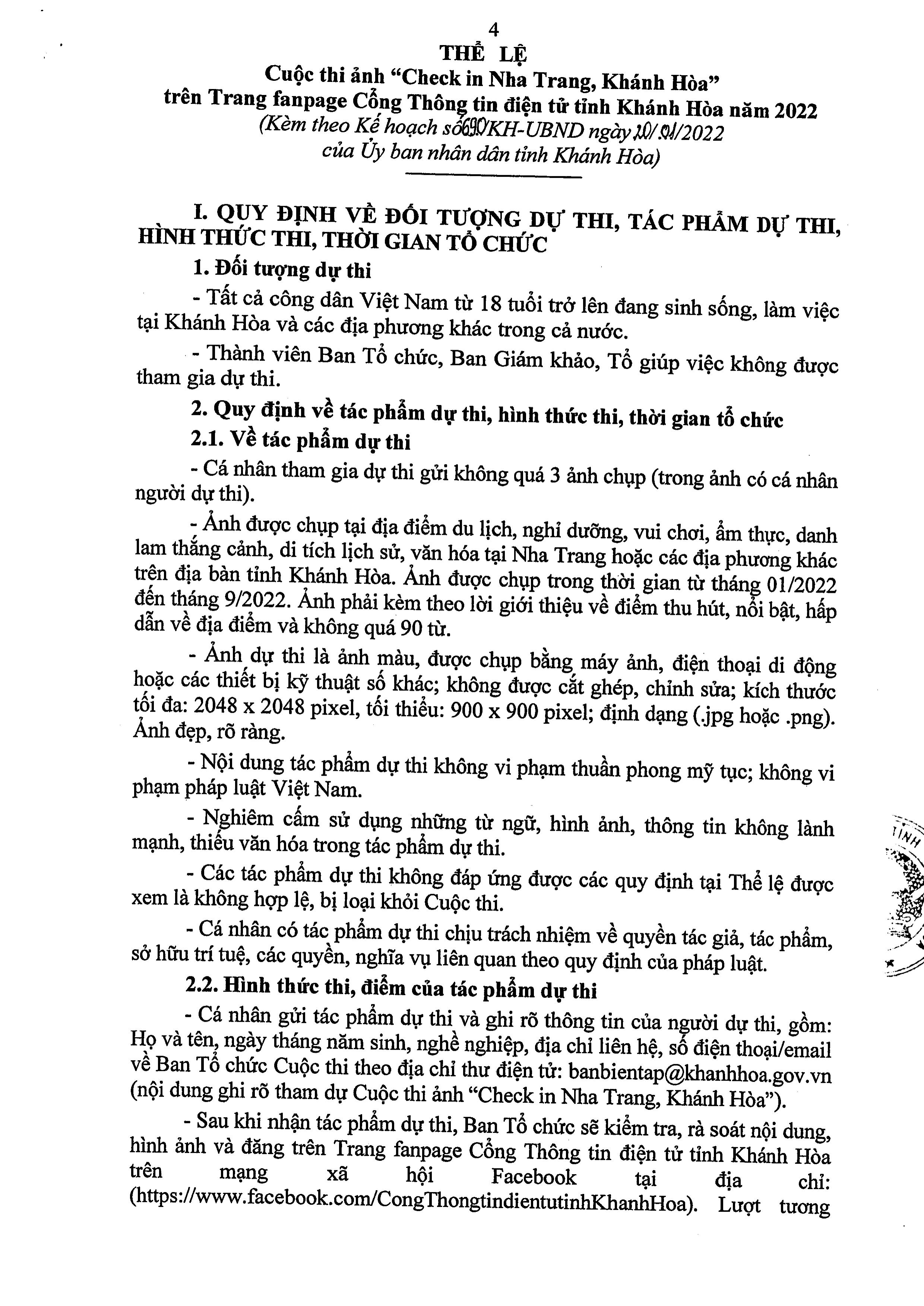 UBND tỉnh Khánh Hòa vừa ban hành kế hoạch tổ chức cuộc thi ảnh Check in Nha Trang - Khánh Hòa trên fanpage Cổng Thông tin điện tử tỉnh Khánh Hòa năm 2022.