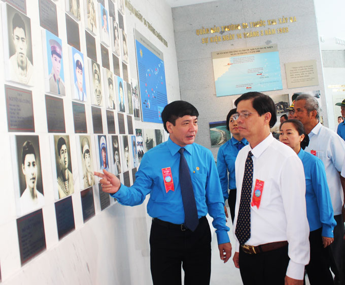Các đồng chí lãnh đạo Trung ương và tỉnh tham quan bảo tàng Khu tưởng niệm chiến sĩ Gạc Ma. |