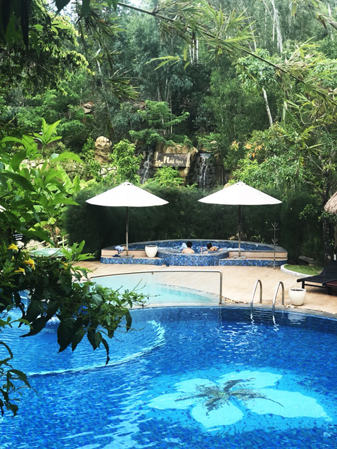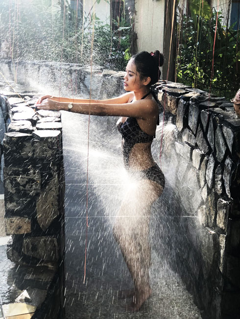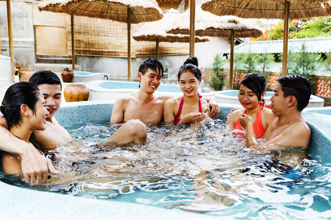 Du khách trải nghiệm các sản phẩm dịch vụ tại Tắm bùn Tháp Bà. |