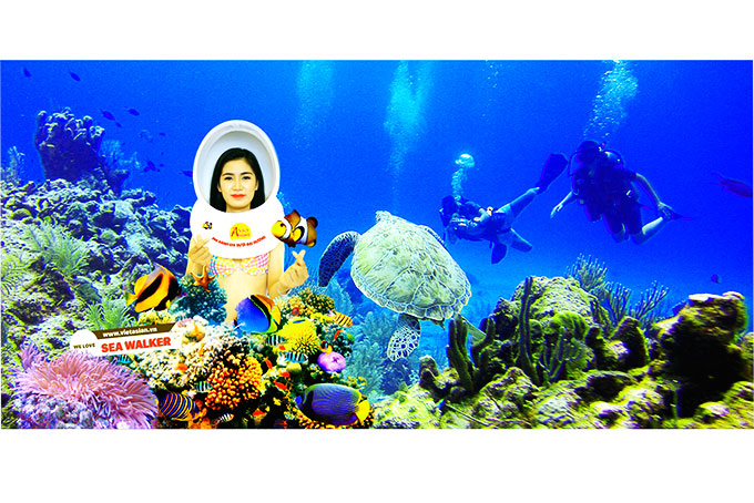 Du khách trải nghiệm sản phẩm Sea Walker của Việt Asian. |