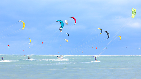 Hàng trăm ván diều đủ màu sắc từ hàng trăm vận động viên lướt ván diều quốc tế làm nên bức tranh đầy sắc màu, sôi động cho bãi biển Ninh Chữ, tô đậm thế mạnh du lịch trải nghiệm biển của vùng đất. Nương theo gió, các vận động viên say mê điều khiển những cánh diều sặc sỡ lướt trên từng ngọn sóng và vút bay lên không trung. Những cú san-tô nghệ thuật nhào lộn thiện nghệ giữa không trung, rồi nhẹ nhàng đáp xuống mặt biển vừa mềm mại, khéo léo, vừa quyết liệt, mạo hiểm… làm bùng những tiếng reo hò phấn khích của du khách và người dân Ninh Thuận.