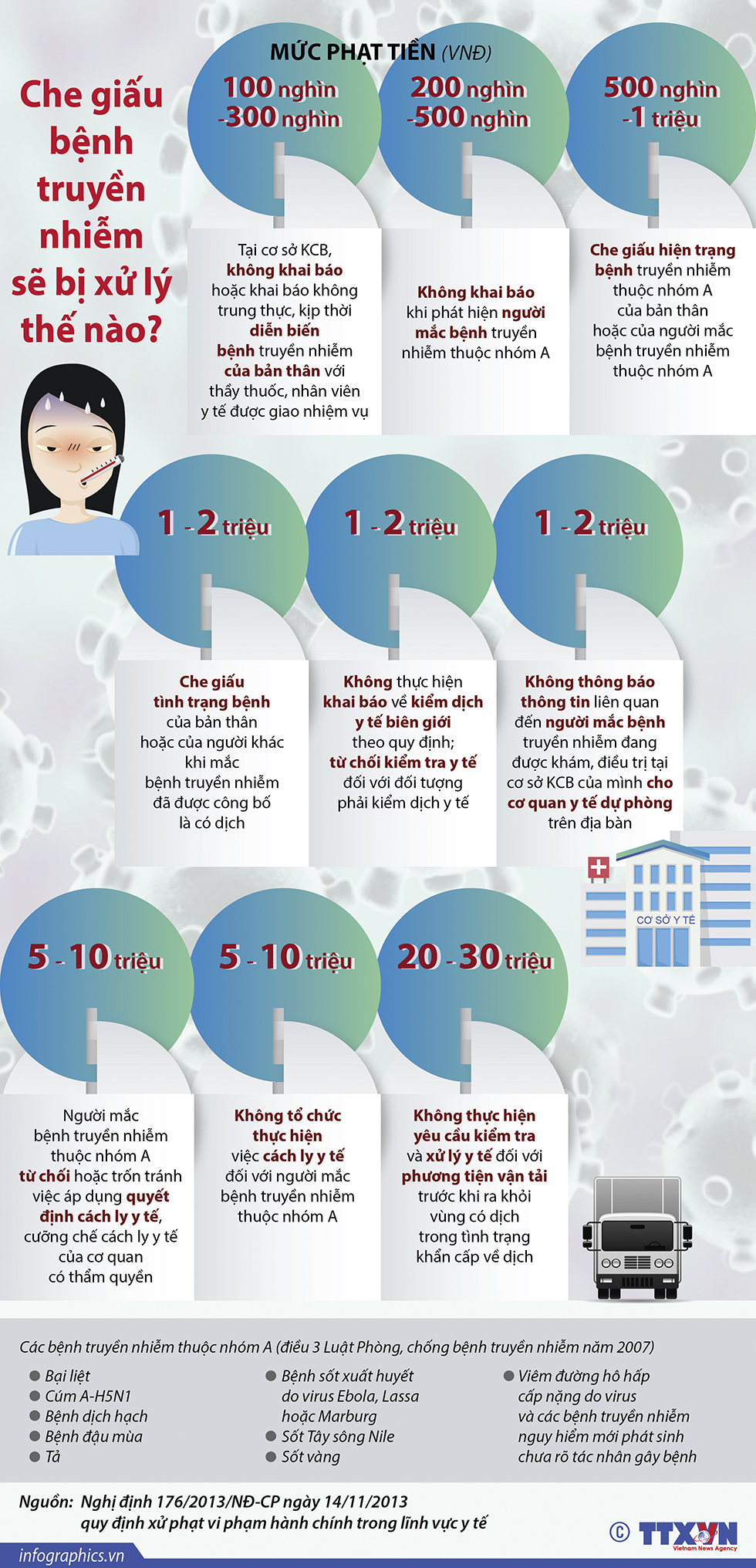 Các hành vi không khai báo, khai báo không trung thực hoặc che giấu hiện trạng bệnh của bản thân hoặc người khác mắc bệnh truyền nhiễm nhóm A đều bị xử phạt theo quy định của pháp luật.
