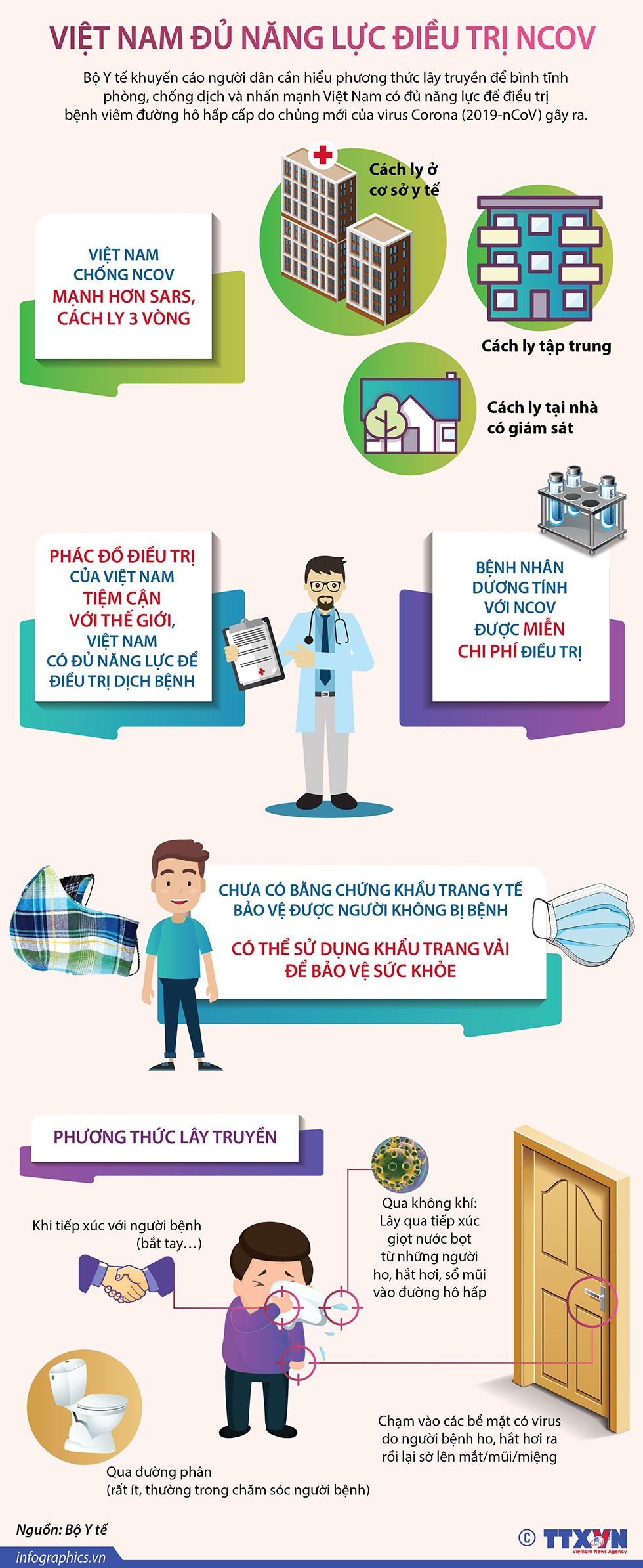 Tại buổi họp báo cung cấp thông tin dịch bệnh viêm đường hô hấp cấp do chủng mới của virus Corona (nCoV) ngày 5/2/2019, Bộ Y tế khuyến cáo người dân cần hiểu phương thức lây truyền để bình tĩnh phòng chống dịch và nhấn mạnh Việt Nam có đủ năng lực để điều trị dịch bệnh này.