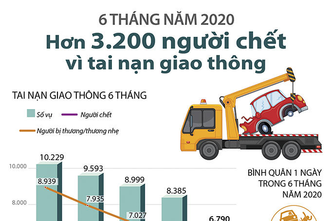 Trong 6 tháng đầu năm 2020, toàn quốc xảy ra 6.790 vụ tai nạn giao thông, làm chết 3.242 người.