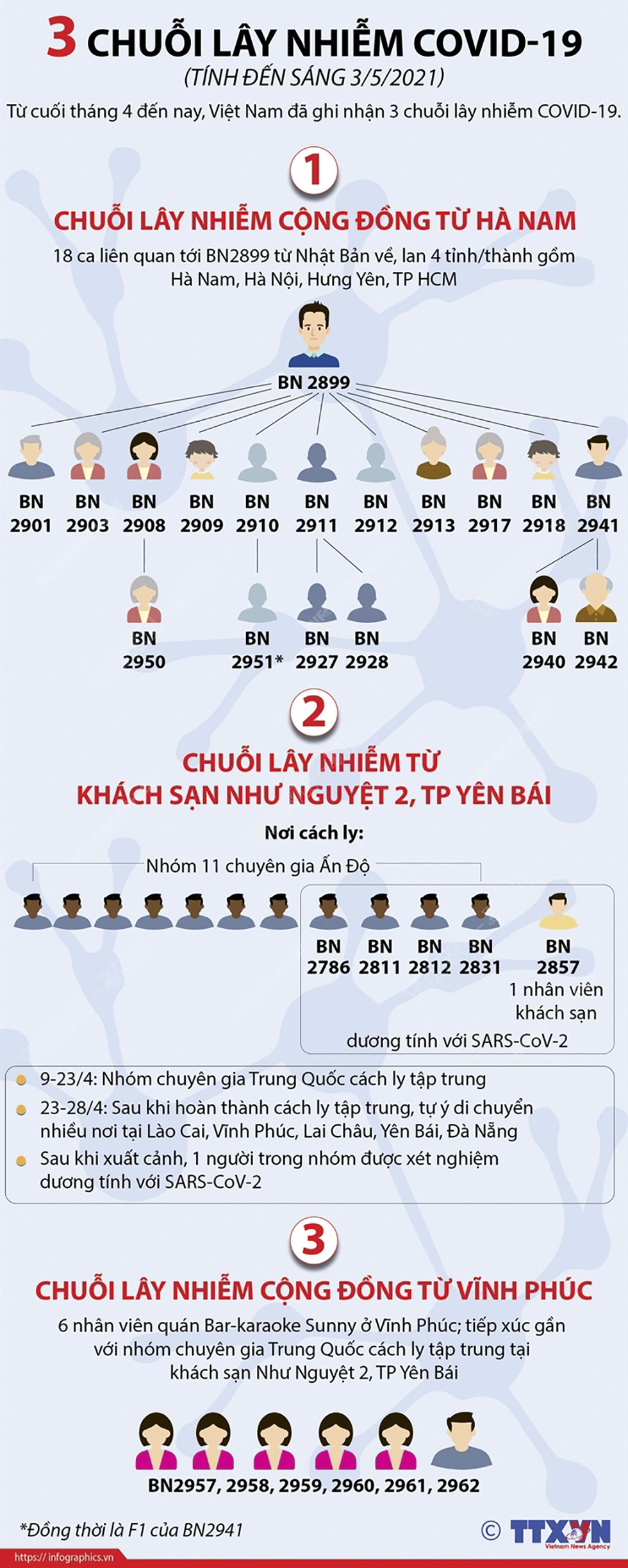 Kết quả giải trình tự gien các ca bệnh Ấn Độ nhập cảnh vào Việt Nam, ca bệnh là nhân viên khách sạn bị lây nhiễm trong khu cách ly và ba ca bệnh ở Vĩnh Phúc cho thấy những bệnh nhận này đã nhiễm biến chủng SARS-CoV-2 ở Ấn Độ. Đây là lần đầu tiên Việt Nam ghi nhận biến chủng Ấn Độ trong các ca nhiễm COVID-19 tại cộng đồng.