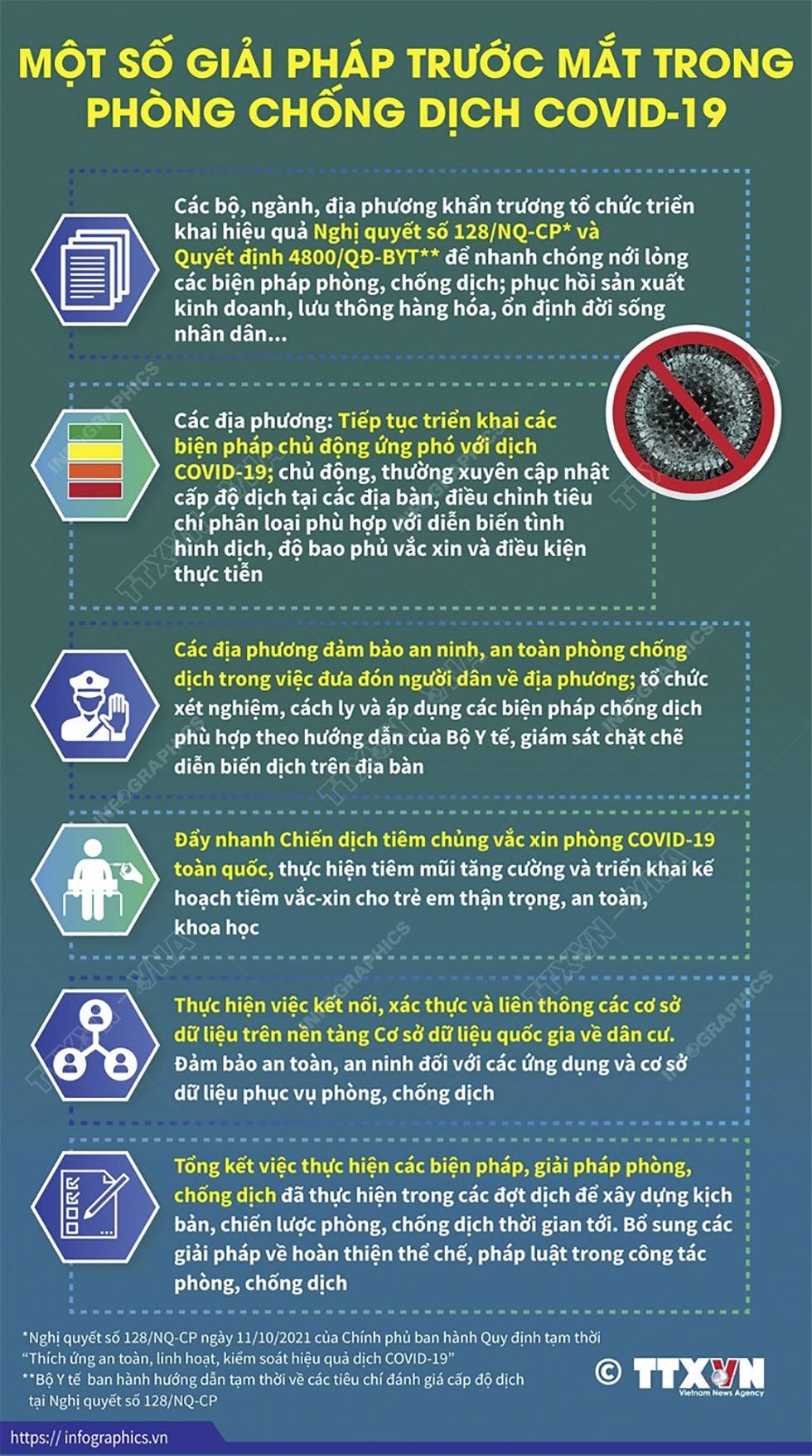 Đối với Việt Nam, một số kinh nghiệm bước đầu được đúc kết từ thực tiễn phòng chống dịch; năng lực ứng phó của hệ thống y tế ngày một nâng lên; chiến lược vắc xin đã phát huy hiệu quả giúp chúng ta chủ động hơn trong việc chuyển hướng chiến lược phòng chống dịch. Thời gian tới cần thực hiện một số giải pháp sau.