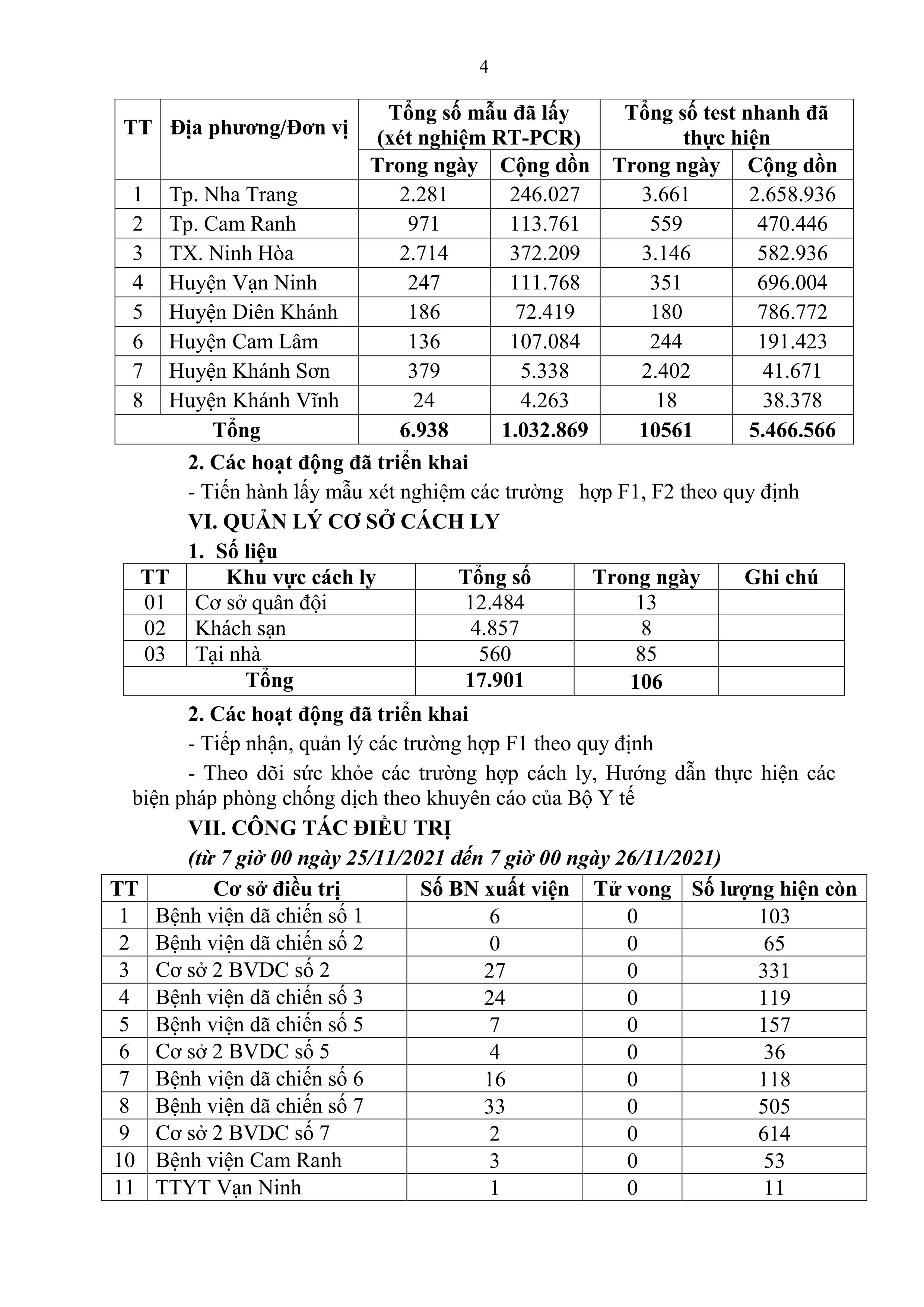 Chiều 26-11, theo Trung tâm Kiểm soát bệnh tật tỉnh Khánh Hòa, từ 12 giờ đến 17 giờ ngày 26-11, toàn tỉnh ghi nhận thêm 104 ca dương tính với SARS-CoV-2.