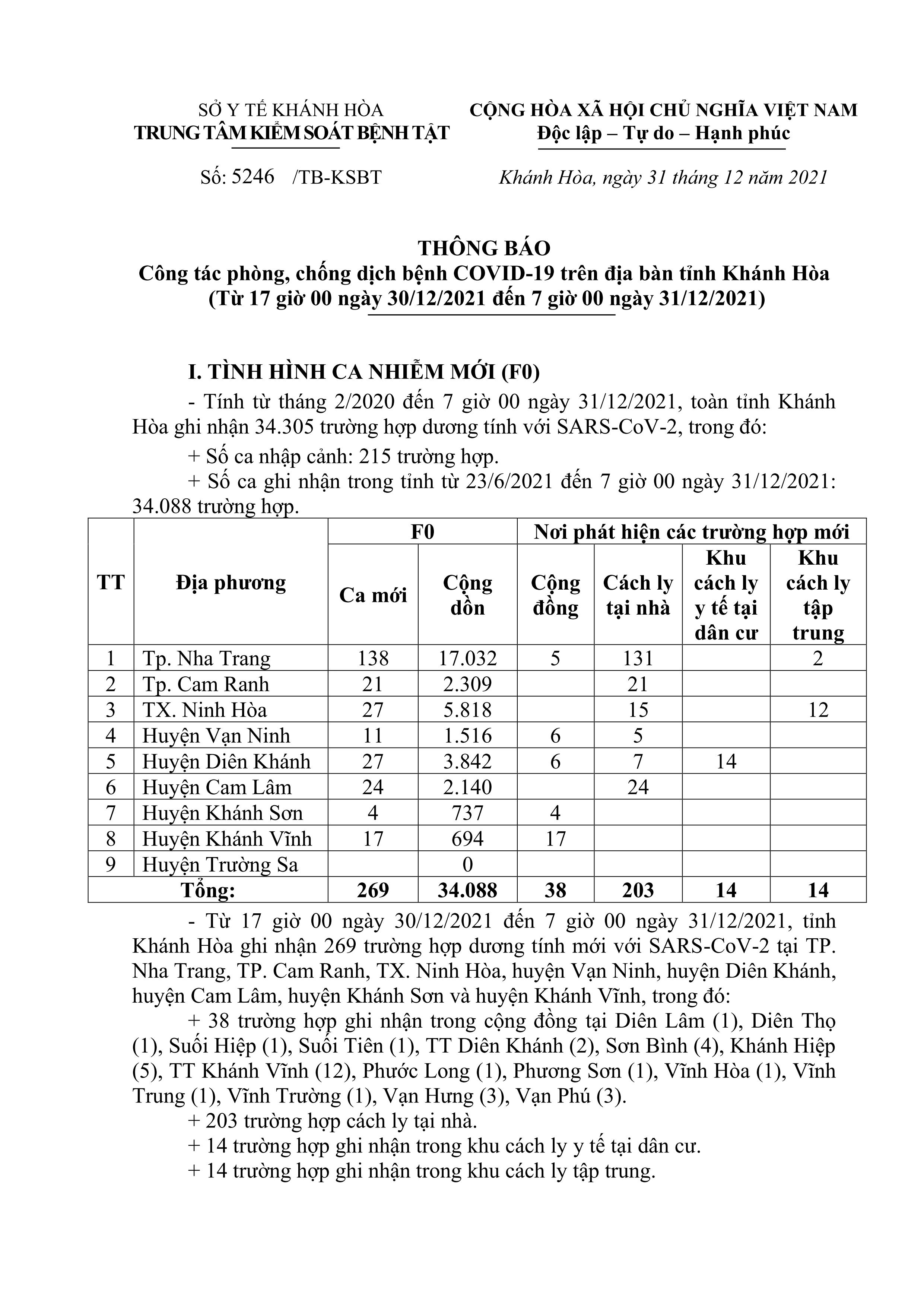 Sáng 31-12, theo Trung tâm Kiểm soát bệnh tật tỉnh Khánh Hòa, từ 17 giờ ngày 30-12 đến 7 giờ ngày 31-12, toàn tỉnh ghi nhận thêm 200 ca dương tính với SARS-CoV-2.