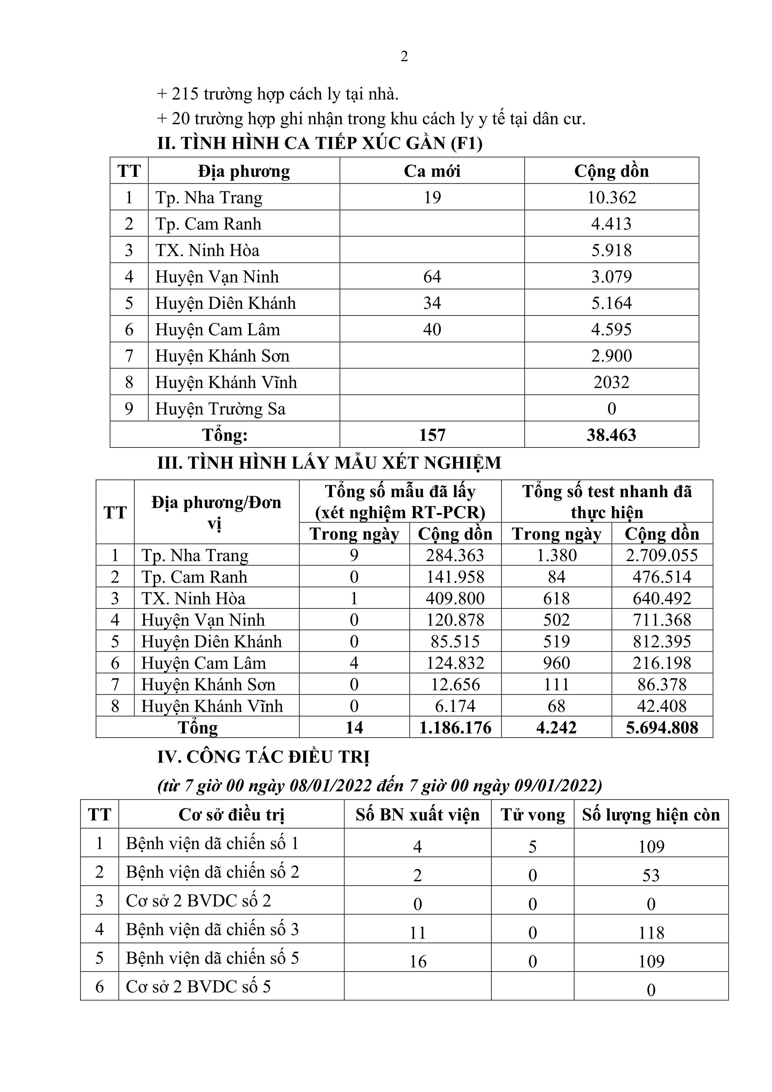 Sáng 9-1, theo Trung tâm Kiểm soát bệnh tật tỉnh Khánh Hòa, từ 17 giờ ngày 8-1 đến 7 giờ ngày 9-1, toàn tỉnh ghi nhận thêm 307 ca dương tính với SARS-CoV-2.