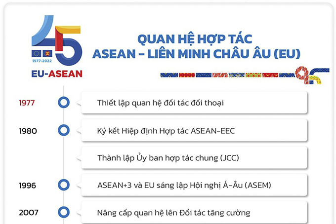 ASEAN và Liên minh châu Âu (EU) thiết lập quan hệ đối thoại từ năm 1977, sau đó chính thức thể chế hoá với việc ký Hiệp định Hợp tác ASEAN-EEC vào năm 1980...