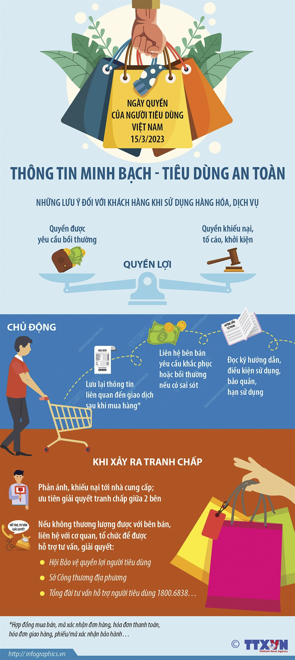 Ngày Quyền của người tiêu dùng Việt Nam (15/3) là sự kiện thường niên do Bộ Công Thương phát động. Năm 2023, với Chủ đề “Thông tin minh bạch - Tiêu dùng an toàn”, nhằm khẳng định ý nghĩa, tầm quan trọng của thông tin đối với sự an toàn của người tiêu dùng trong quá trình lựa chọn, thanh toán, sử dụng hàng hóa, dịch vụ.