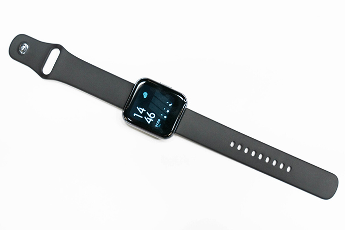 Realme Watch có thiết kế hình chữ nhật, trông không khác nhiều Apple Watch. Màn hình sử dụng tấm nền LCD kích thước 1,4 inch, độ phân giải 320 x 320 pixel.