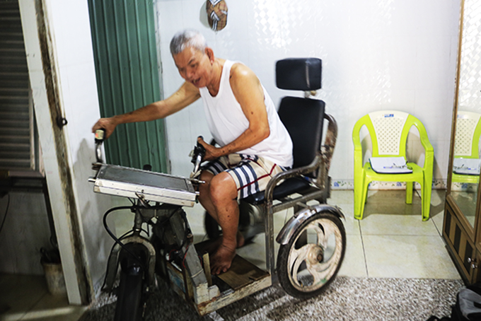 Xe lăn điện do ông Đức cải tiến. |