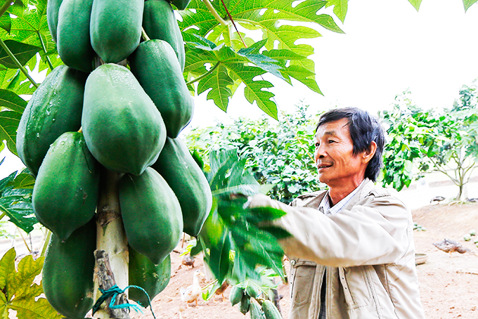 Qua quan sát, những cặp đu đủ được ông Châu “xe duyên” này không chỉ tạo nên hình thế rất trữ tình, mà còn cho trái chi chít, sà xuống sát mặt đất. “Lúc cao điểm, cả vườn có 250 cây đu đủ. Mỗi tháng thu hoạch 3 lần, mỗi lần thu được 500kg với giá bán từ 7 đến 10 nghìn đồng/kg. Cây đu đủ đã giúp gia đình tôi trang trải cuộc sống, nuôi con ăn học, thậm chí tôi còn xây được nhà nhờ cây đu đủ”, ông Châu chia sẻ.