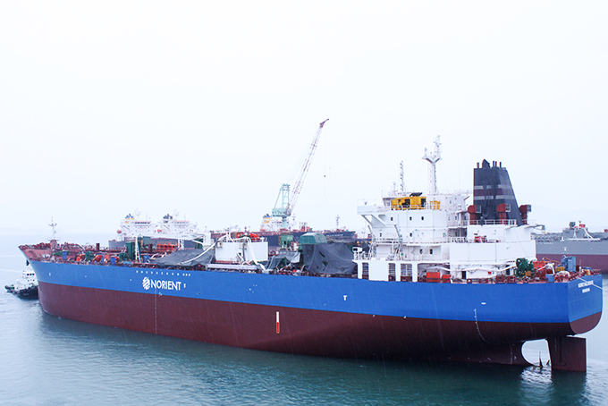 Một tàu đóng mới tại Công ty TNHH Đóng tàu Hyundai Việt Nam. |