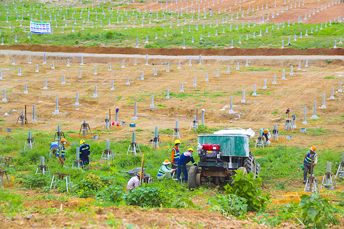 Tương tự, Nhà máy điện mặt trời Long Sơn (công suất 170MWp, tổng mức đầu tư 2.600 tỷ đồng) hiện cũng đã giải phóng 100% mặt bằng. Công tác san gạt mặt bằng dự án và thi công đường nội bộ đã hoàn thành. Đến ngày 15-9, dự án thi công được gần 13.000 cọc bê tông để lắp giá đỡ pin. Dự kiến đến ngày 20-10 sẽ hoàn thành việc đổ cọc cho giá đỡ và ngày 30-11 hoàn tất việc lắp pin năng lượng. Chủ dự án phấn đấu đến ngày 10-12 chính thức phát điện thương mại.