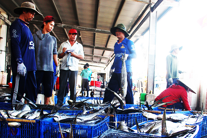 Ngư dân TP. Nha Trang đưa thủy sản khai thác về tiêu thụ tại cảng Hòn Rớ. |
