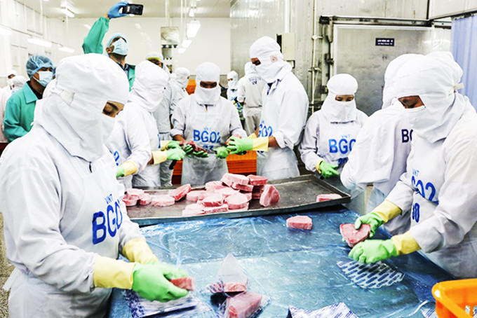 Theo thống kê của Chi cục Thủy sản, trên địa bàn tỉnh có 44 DN chế biến thủy sản xuất khẩu được Bộ Nông nghiệp và Phát triển nông thôn cấp chứng nhận đạt tiêu chuẩn ngành. Các sản phẩm thủy sản xuất khẩu của DN chế biến trong tỉnh, chủ lực là cá ngừ đã có mặt ở 64 thị trường trên thế giới. Do nguồn cung trong tỉnh đáp ứng chưa đến 50% nhu cầu của các nhà máy nên hầu hết DN đều nhập khẩu nguyên liệu từ nước ngoài và tổ chức thu mua từ ngoài tỉnh để chế biến, thậm chí có DN phải nhập khẩu đến 70 - 80%. Việc thiếu nguyên liệu đầu vào cũng dẫn đến tình trạng cạnh tranh không lành mạnh giữa các DN chế biến, nậu vựa thu mua… Có trường hợp DN và ngư dân thỏa thuận bao tiêu sản phẩm khai thác được, nhưng khi nậu vựa khác thu mua với giá cao hơn, ngư dân liền bán cho nậu vựa chứ không bán cho DN.