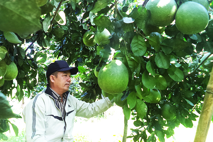 Gia đình ông Cao Đinh (thôn Ko Róa, xã Sơn Lâm) có 70 cây bưởi da xanh 5 - 6 năm tuổi. Năm 2020, vườn bưởi của gia đình ông bắt đầu cho thu hoạch. Bưởi da xanh là loại cây trồng cho thu hoạch quanh năm, mỗi đợt cắt ông thu được 2 tạ. Hiện nay, gia đình ông đang tập trung chăm sóc lứa bưởi Tết. Ước tính, Tết này, vườn bưởi nhà ông thu được khoảng 5 tạ. Ông Đinh đã đăng ký thực hiện theo mô hình VietGAP nhằm nâng cao năng suất, chất lượng vườn bưởi. Để có lứa bưởi Tết đạt chất lượng, gia đình ông không sử dụng các loại phân bón hóa học; cũng chỉ sử dụng biện pháp bẫy, bả để phòng trừ sâu bệnh nhằm tạo ra sản phẩm an toàn vệ sinh thực phẩm. Hiện nay, giá bưởi thương lái thu mua tại vườn bình quân 20.000 đồng/kg, giảm so với tháng trước khoảng 5.000 - 7.000 đồng/kg. Thương lái đã đến nhà ông Đinh đặt cọc mua bưởi Tết.