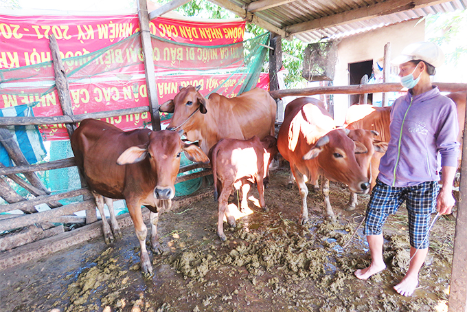Nhờ được điều trị kịp thời, con bê của gia đình bà Huệ đã dần khỏi bệnh. |