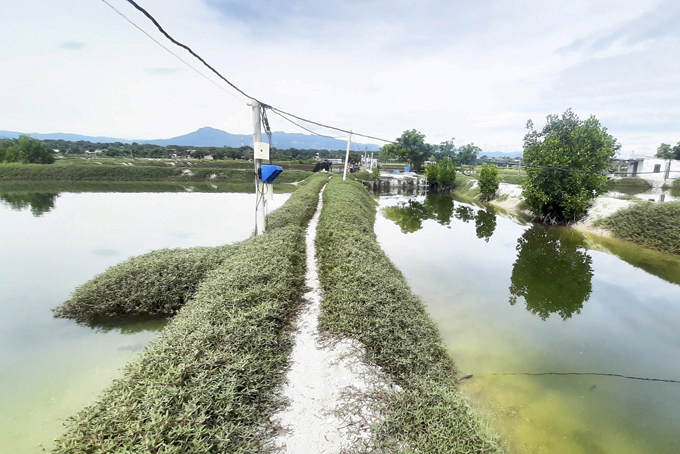 Quan sát vùng nuôi này, chúng tôi ghi nhận cứ khoảng 4-5 đìa (1.000m2/đìa) sử dụng chung 1 hệ thống mương dẫn nước từ đầm Thủy Triều; chưa có hệ thống thoát nước riêng biệt cho từng đìa. Ở miệng cống nước dẫn từ đầm Thủy Triều vào vùng nuôi tôm, cá, nước có màu đen và rất nhiều rác thải, xác tôm, cá chết, không đảm bảo vệ sinh môi trường.