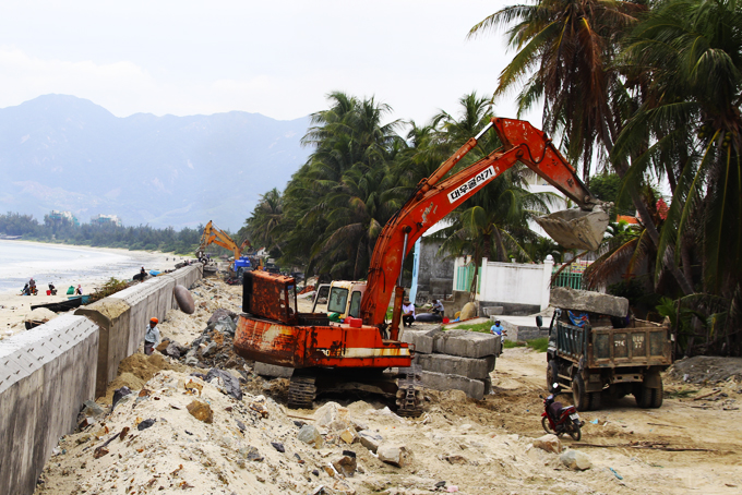 Dự án Kè bờ biển phường Ninh Hải đang thi công. |