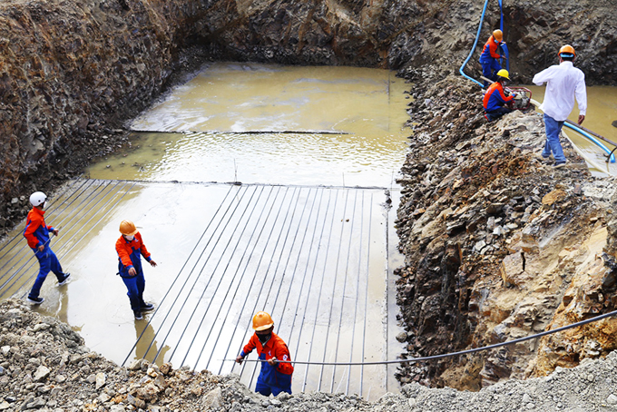 Đơn vị thi công vị trí móng số 1 Đường dây 500kV Vân Phong - Vĩnh Tân trong ngày Tết. |
