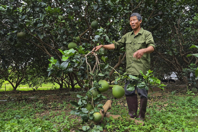 Cựu chiến binh Bùi Văn Địa giới thiệu về mô hình trang trại của gia đình. |