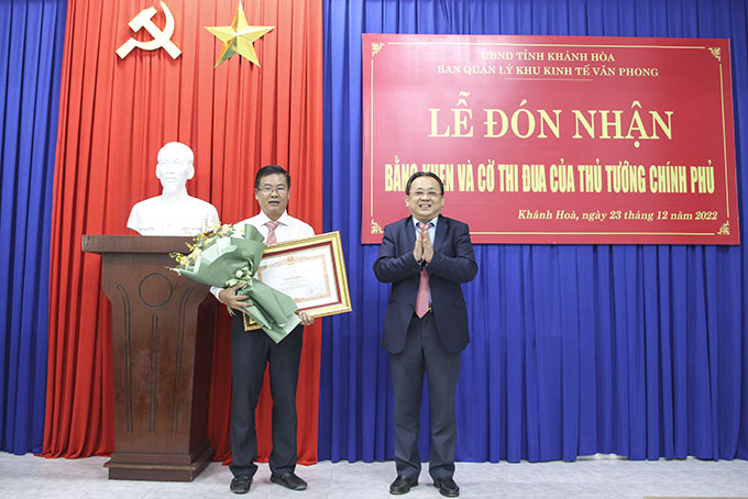Chiều 23-12, Ban Quản lý Khu Kinh tế Vân Phong tổ chức đón nhận bằng khen và cờ thi đua của Thủ tướng Chính phủ. Đến dự có ông Lê Hữu Hoàng - Phó Chủ tịch Thường trực UBND tỉnh.