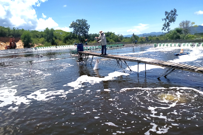 Nuôi tôm thẻ chân trắng ứng dụng công nghệ cao tại xã Ninh Phú (thị xã Ninh Hòa). |