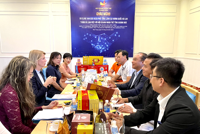 Chiều 10-2, tại TP. Nha Trang, Hội Doanh nhân trẻ Khánh Hòa có buổi làm việc với bà Eline Van Der Veen - Phó Tổng Lãnh sự Vương quốc Hà Lan tại TP. Hồ Chí Minh để tìm hiểu cơ hội hợp tác, đầu tư cho các doanh nghiệp Hà Lan.