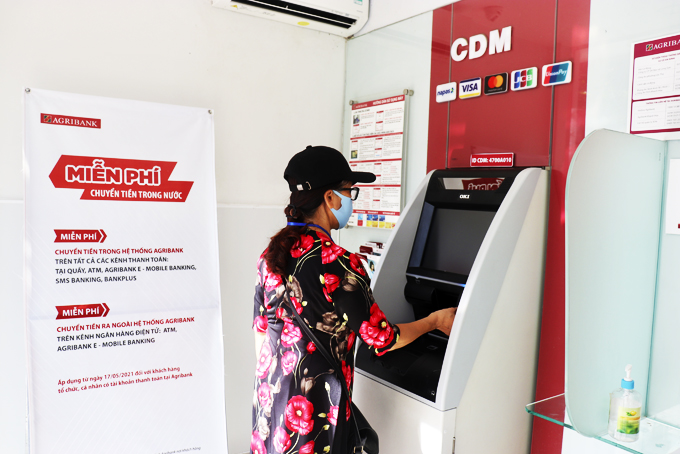 Khách hàng đang giao dịch rút tiền tại máy CDM - Agribank Chi nhánh tỉnh Khánh Hòa. |