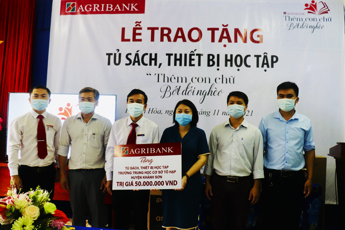 Ngày 9-11-2021, Agribank Chi nhánh huyện Khánh Sơn và Agribank Chi nhánh huyện Cam Lâm đã trao tặng tủ sách, thiết bị học tập gồm 3 ti vi, vở, xe đạp và 166 suất học bổng cho các em học sinh có hoàn cảnh khó khăn.