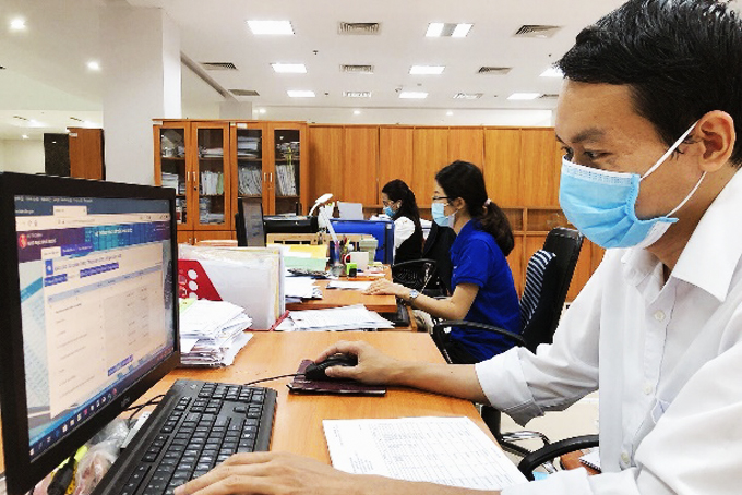 Kế toán viên Phòng Kế toán nhà nước, Kho bạc Nhà nước Khánh Hòa thực hiện công tác tổng hợp, lập Báo cáo tài chính nhà nước tỉnh năm 2020. |