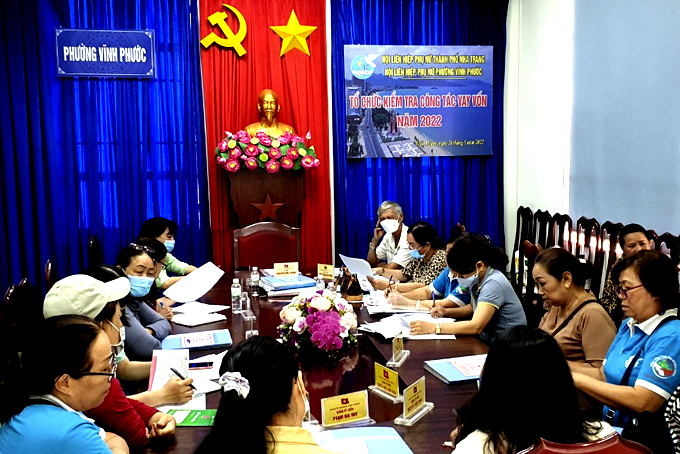 Hội Phụ nữ phường Vĩnh Phước kiểm tra công tác vay vốn tín dụng chính sách. |