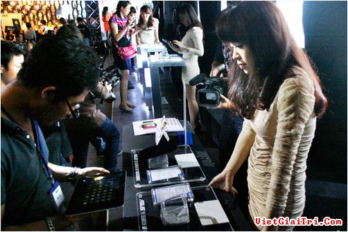 | Khách tham dự sự kiện công bố hào hứng trải nghiệm thiết bị. |
